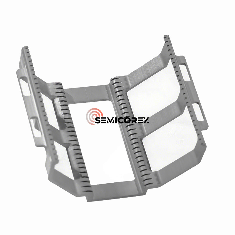 यी डु boats ्गालाई विभिन्न जटिल ज्यामितिहरू र अंश-विशिष्ट आयामहरूसँग सटीक मशीनिन र प्रविधिको साथ उत्पादन गर्न सकिन्छ। डिजाइनले सामान्यतया बहुमुखी स्लटहरू / गिरावटलाई एक तेर्सो अभिमुखिकरणमा सुरक्षित रूपमा सुरक्षित गर्न प्रयोग गर्दछ स्लट-देखि-स्लट स्पेसिंग र कोणहरू अन्य व्यासको वाफरलाई फिट गर्न सकिन्छ, जस्तै 1 1500 मिमी, 200 मिमी, वा 30000 मिलीग्राम प्रशोधन गर्ने क्रममा।