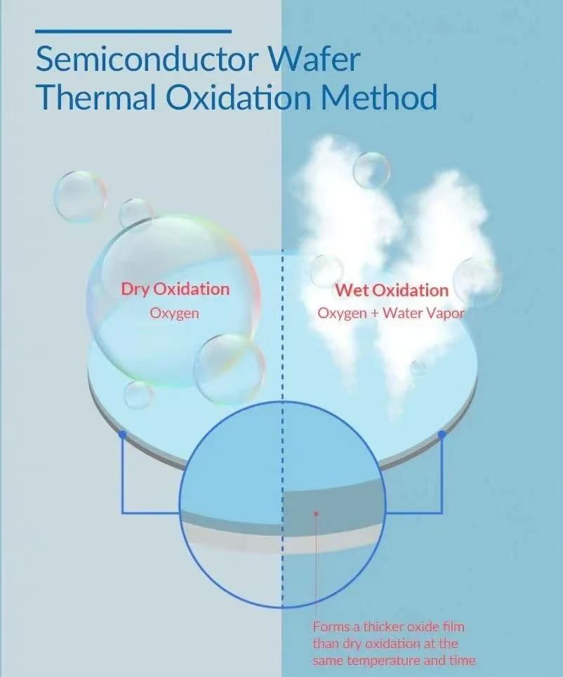 भिजेको अक्सिडेशनले सिलिकन वेफरहरूलाई उच्च-तापमानको पानीको भापमा पर्दाफास गरेर सञ्चालन गर्दछ, जसले सिलिकन र वाष्पको बीचमा रासायनिक प्रतिक्रियालाई सिलिकन डाइअक्साइड (SiO₂) बनाउन ट्रिगर गर्छ। यो प्रक्रियाले कम एकरूपता र घनत्वको साथ अक्साइड तहहरू उत्पादन गर्छ र H₂ जस्ता अवांछनीय उप-उत्पादनहरू उत्पादन गर्दछ, जुन सामान्यतया कोर प्रक्रियामा प्रयोग हुँदैन। यो किनभने अक्साइड फिल्मको वृद्धि दर छिटो हुन्छ किनभने पानीको वाष्पको प्रतिक्रिया शुद्ध अक्सिजन भन्दा बढी हुन्छ। तसर्थ, भिजेको अक्सीकरण सामान्यतया अर्धचालक निर्माणको मुख्य प्रक्रियाहरूमा प्रयोग हुँदैन।