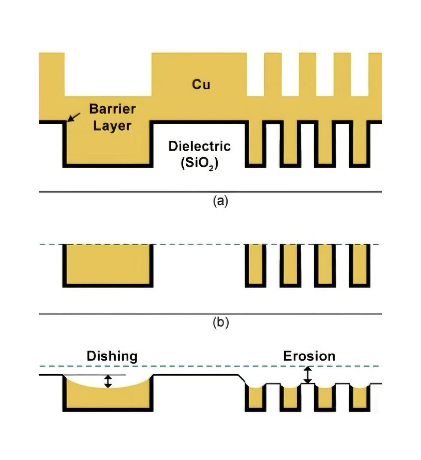 रासायनिक मेकानिकल पालिशिङ (CMP), जसले सतहको त्रुटिहरू हटाउन रासायनिक क्षरण र मेकानिकल पालिसिङलाई संयोजन गर्दछ, समग्र प्लानराइजेशन प्राप्त गर्नको लागि महत्त्वपूर्ण अर्धचालक प्रक्रिया हो।वेफरसतह। CMP ले दुईवटा सतही दोषहरू, डिशिङ र इरोसनमा परिणाम दिन्छ, जसले अन्तरसम्बन्धित संरचनाहरूको समतलता र विद्युतीय कार्यसम्पादनमा महत्त्वपूर्ण प्रभाव पार्छ।
