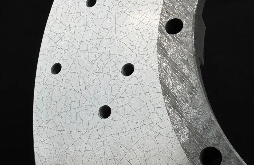 १) CCB कार्बन-सिरेमिक ब्रेक डिस्कतिनीहरूको सतहमा SiC कोटिंगले ढाकिएको छ, चमकदार सतह र राम्रो दरारहरू प्रस्तुत गर्दछ।