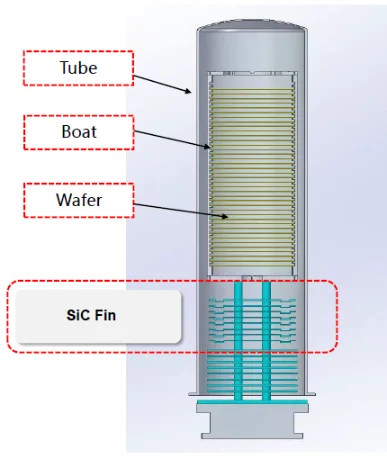 सेमिकोरेक्स ठोससिलिकन कार्बाइड फिनसामान्यतया सेमीकन्डक्टर थर्मल उपचार उपकरणहरूको ठाडो फर्नेस ट्युबहरूमा थर्मल इन्सुलेशन कम्पोनेन्टको रूपमा स्थापना गरिन्छ, जस्तै RTP एनिलिङ फर्नेसहरू र डिफ्युजन फर्नेसहरू। Semicorex ठोस सिलिकन कार्बाइड फिनले प्रभावकारी रूपमा उच्च-तापमान भट्टीहरूमा तापक्रम वितरणलाई विनियमित गर्न सक्छ र उच्च तापक्रमको कारणले गर्दा ढोका सील गर्ने भागहरू प्रशोधन गर्न गर्मीको क्षतिलाई कम गर्न सक्छ। भिजेको अक्सिडेशन अपरेटिङ अवस्थाहरूमा, सेमिकोरेक्स ठोस सिलिकन कार्बाइड फिनहरू प्रभावकारी रूपमा प्रक्रिया परिणामहरू र सेमीकन्डक्टर उपकरणहरूमा नकारात्मक प्रभावहरू रोक्न प्रयोग गर्न सकिन्छ जुन अपेक्षाकृत कम प्रक्रियाको तापक्रममा जल वाष्प संक्षेपणको कारण हुन्छ।