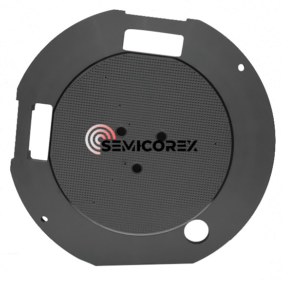 वेफर ह्यान्डलिंग र स्थानको शुद्धताले लिथोग्राफीको उत्पादन उपजलाई प्रत्यक्ष असर गर्छ र अर्धचालक उद्योगमा सेमीकन्डक्टर यन्त्रहरूले कत्तिको राम्रोसँग काम गर्छन्, र यी दुई कार्यहरू सेमिकोरेक्स वेफर भ्याकुम चकहरू प्रयोग गरेर पूरा हुन्छन्, जुन घना सिन्टेड सिलिकन कार्बाइड (SiC) बाट बनेको हुन्छ। यी भ्याकुम चकहरू लिथोग्राफी र वेफर प्रशोधन जस्ता गम्भीर वातावरणहरूमा अत्यधिक परिशुद्धताका साथै संरचनात्मक कठोरता र दीर्घायुको लागि डिजाइन गरिएको हो। भ्याकुम चकसँग एक सटीक रूपमा बनेको माइक्रोप्रोट्रुसन (बम्प) सतह छ जुन सोखन मार्फत स्थिर भ्याकुमको साथ स्थिर वेफर समर्थन प्रदान गर्न डिजाइन गरिएको छ।